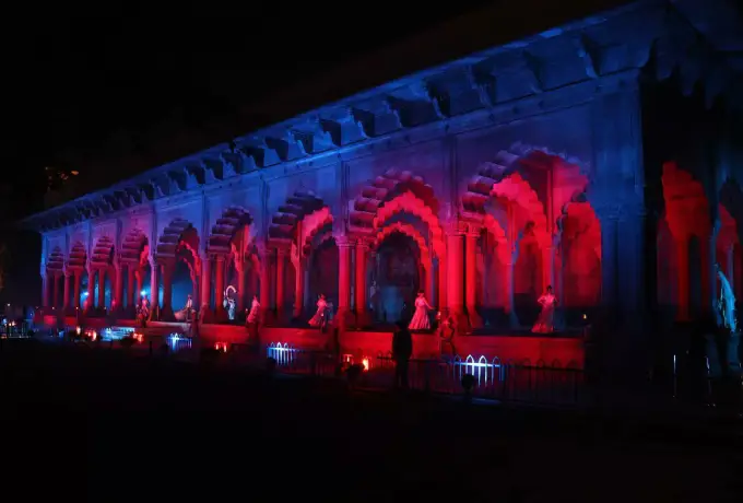 「ラング・エ・アグラ: ユゴン・カ・サファル」(アグラの色彩: 時代を超えて)を再構築した45分マルチメディア・スペクタクルで、ディーワン・イ・アーム中庭で展開、先進プロジェクションマッピングにより城壁をムガル皇帝、大英帝国時代、インド独立闘争の物語で蘇らせます。