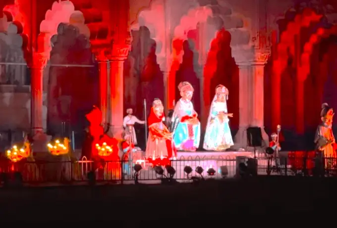 アグラ・フォートで上演される45分間のショー(通常19:30頃開始)、ヒンディー語と英語対応。