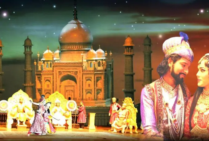 物語: 80〜90分のミュージカルで、シャー・ジャハーン皇帝とムムターズ・マハルの伝説的恋愛と、タージ・マハル建設の22年を描きます。パフォーマンス: 80名以上の才能あるアーティストが、豪華ムガル様式衣装で伝統インド民舞踊・ドラマを披露。レプリカ: クライマックスに油圧リフトで浮上する12×12フィートの白マカラナ大理石タージ・マハル複製(重さ約10,000ポンド/8〜10トン、半貴石象嵌、10年製作)。注記: ヒンディー語・英語上演、多言語ヘッドホン翻訳対応でステージ理解を支援。