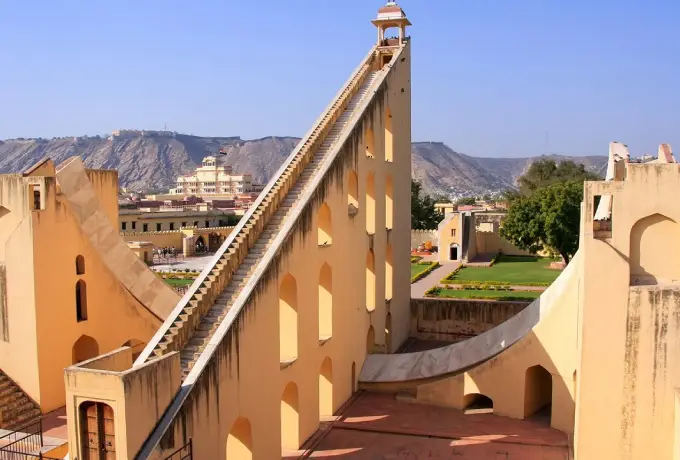ジャンタル・マンタル:ジャイプールにある天文台で、ユネスコ世界遺産。世界最大の石製日時計サムラート・ヤントラを備え、シティ・パレスとハワ・マハル近くに位置します。