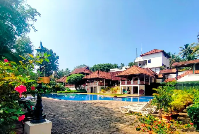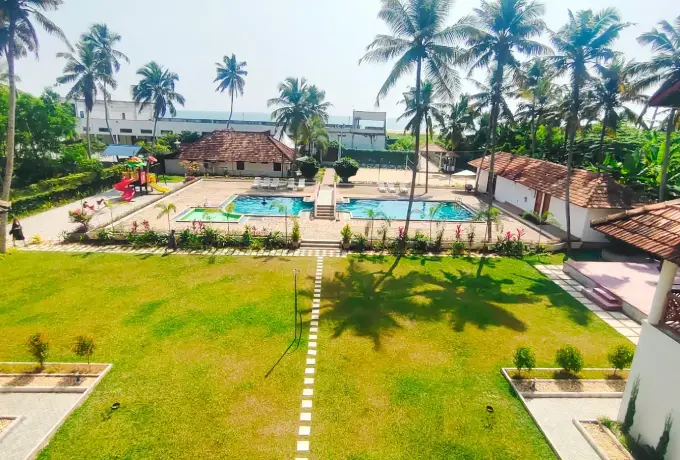 トリヴァンドラム・ケララの南コヴァラムビーチ近く、60,000㎡の緑豊かなココナッツ園のシーサイド・リゾート。